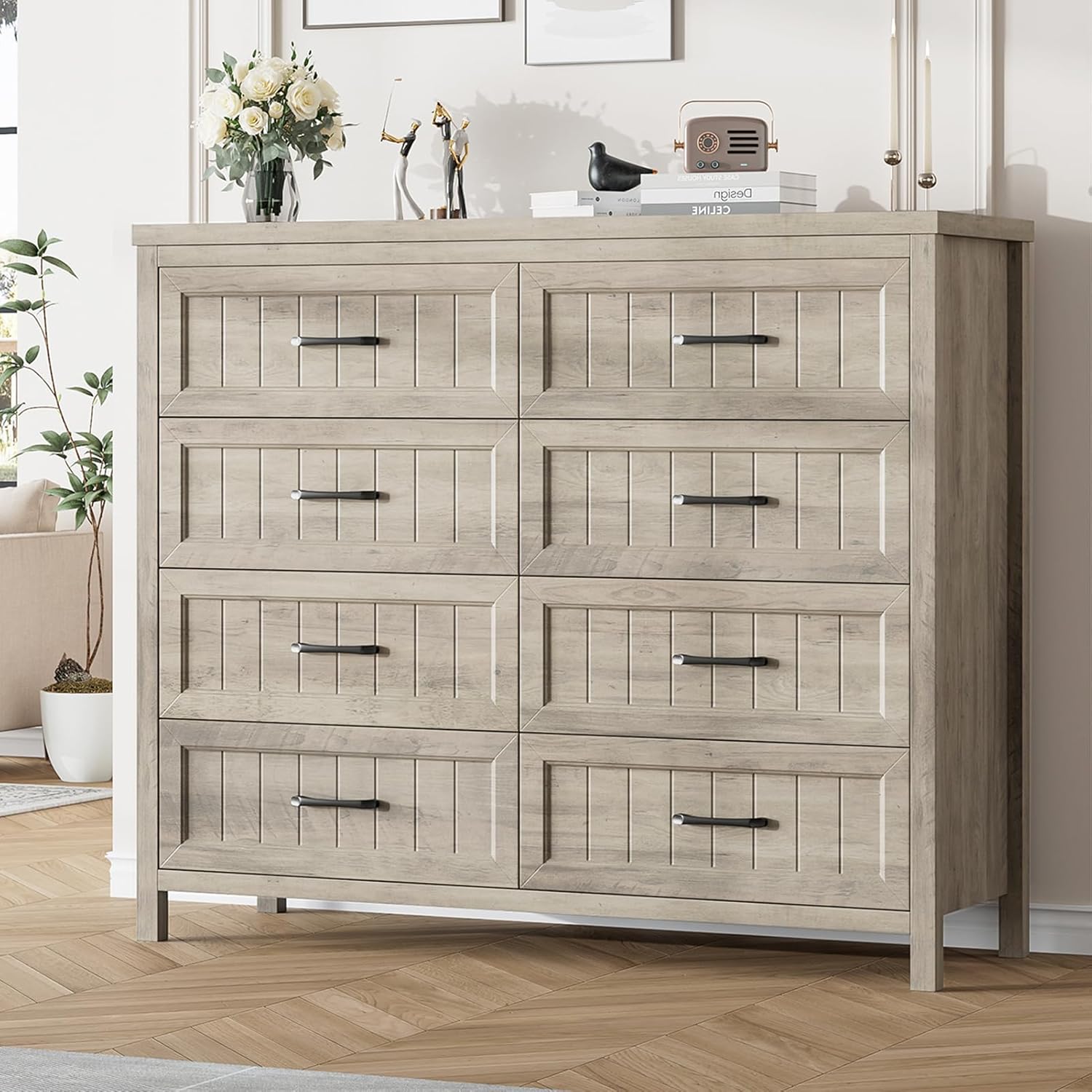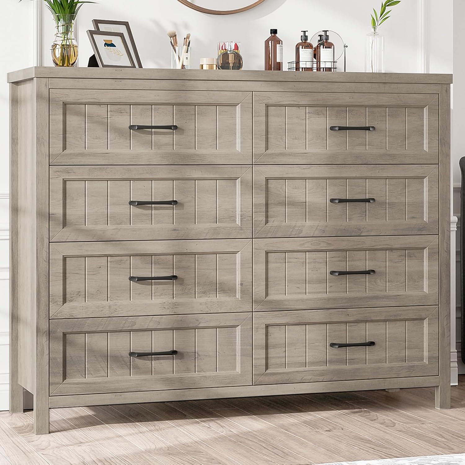 Farmhouse Dresser 8 Drawer Dresser for Bedroom, Large Wooden Dressers Double Grey Dresser with Deep Drawers Dressers for Hallway, Entryway (Gray)